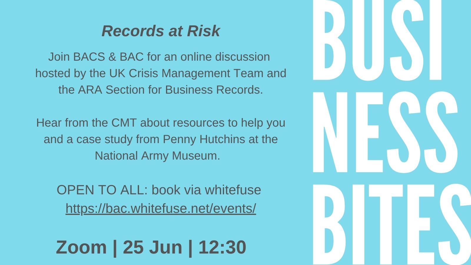 Our June 2025 Business Bites session was held on Wednesday 25th June on the topic of 'Records at Risk'. Hosted by the UK Crisis Management Team in partnership with the ARA Section for Business Records. This session will hear from the UK National Archives about their records at risk support and...
