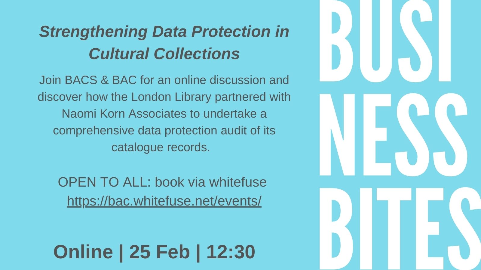 These will continue throughout 2026 and we will hold a Business Bites event every two months with the first event in February on Strengthening Data Protection in Cultural Collections: The London Library’s Audit with Naomi Korn Associates. The full programme will be shared below once confirmed. All Business Bites sessions are held on the last Wednesday of the month.