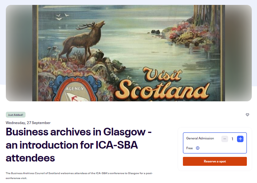 The conference is a great opportunity to raise the profile of our small but mighty business archives sector in Scotland(!) and BACS has put together a programme of visits over in Glasgow on Wednesday 27th September ‘business archives in Glasgow – an introduction for ICA-SBA attendees‘. If you’re coming for the conference and staying on in Scotland then you can book a place here to visit additional business archives and learn about the variety of organisations and examples of partnership working that the Scottish business archives sector has developed. We look forward to welcoming you to Glasgow.
