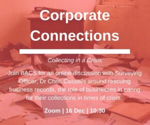 The theme of this event was ‘Collecting in a Crisis’ – A Guide to Rescuing Business Records. Discussion was led by Christopher Cassells, Business Archives Council Surveying Officer, who introduced a recent BACS/ SCA publication on the topic and lead discussion about the role of businesses and caring for their collections in times of crisis.